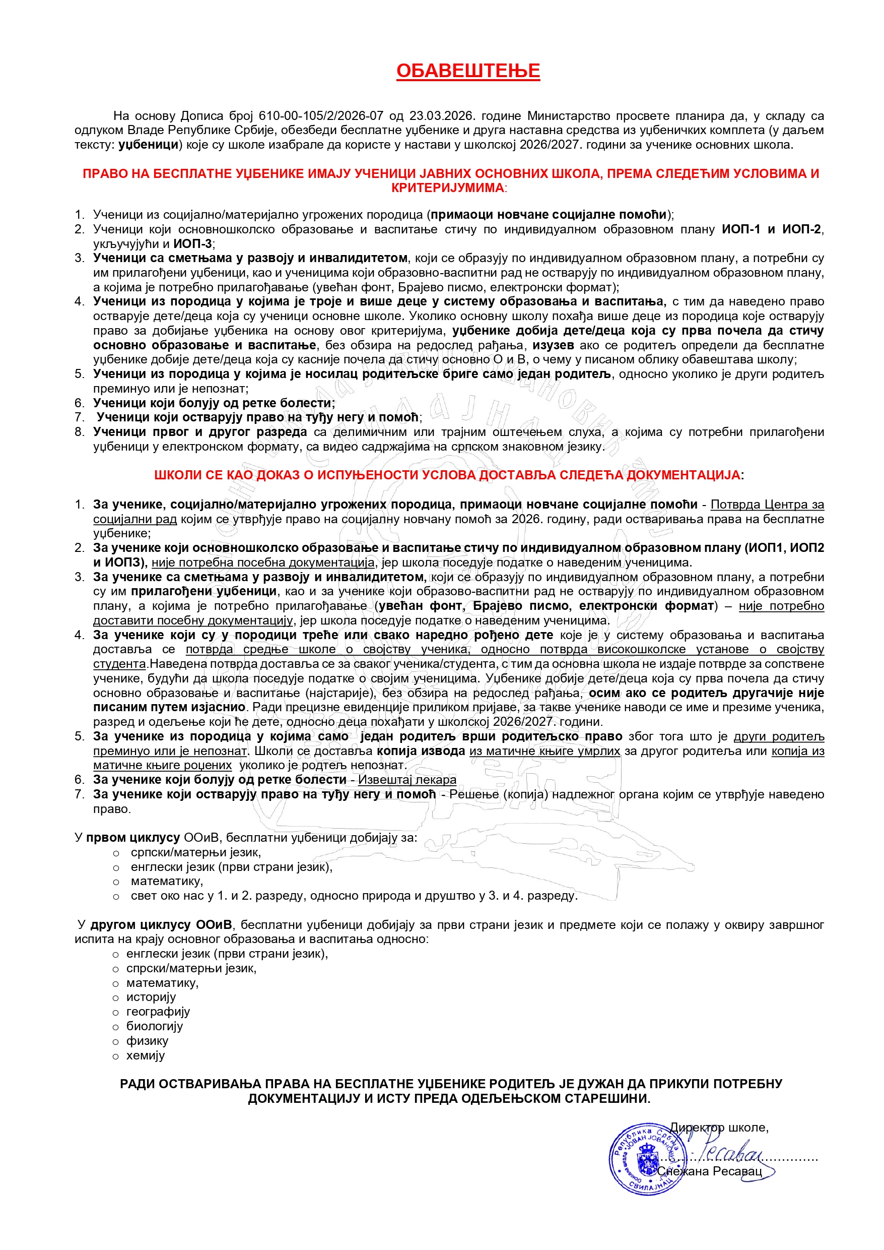 Остваривање права на бесплатне уџбенике