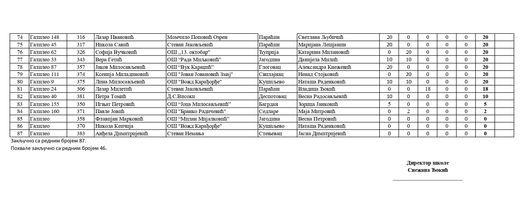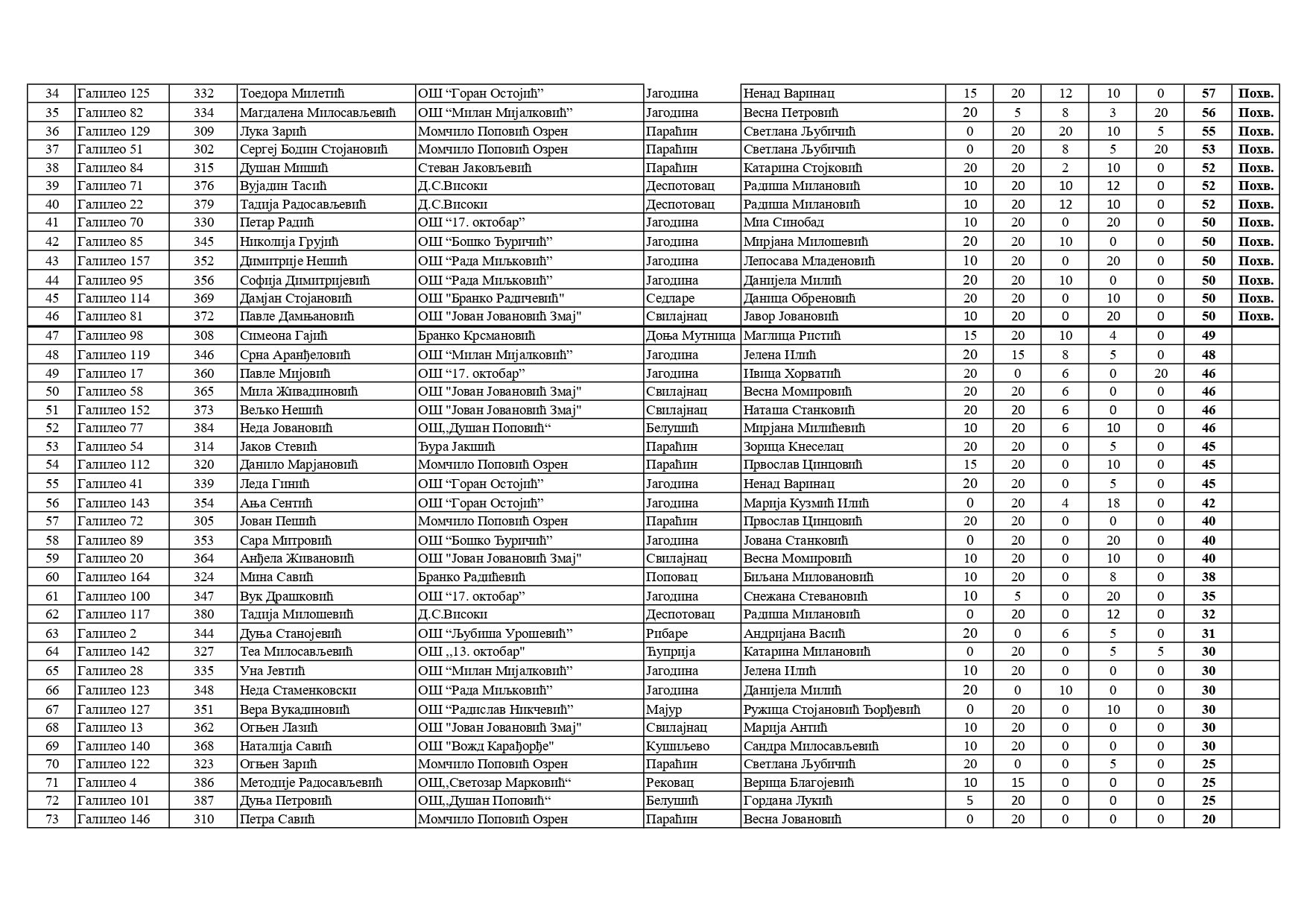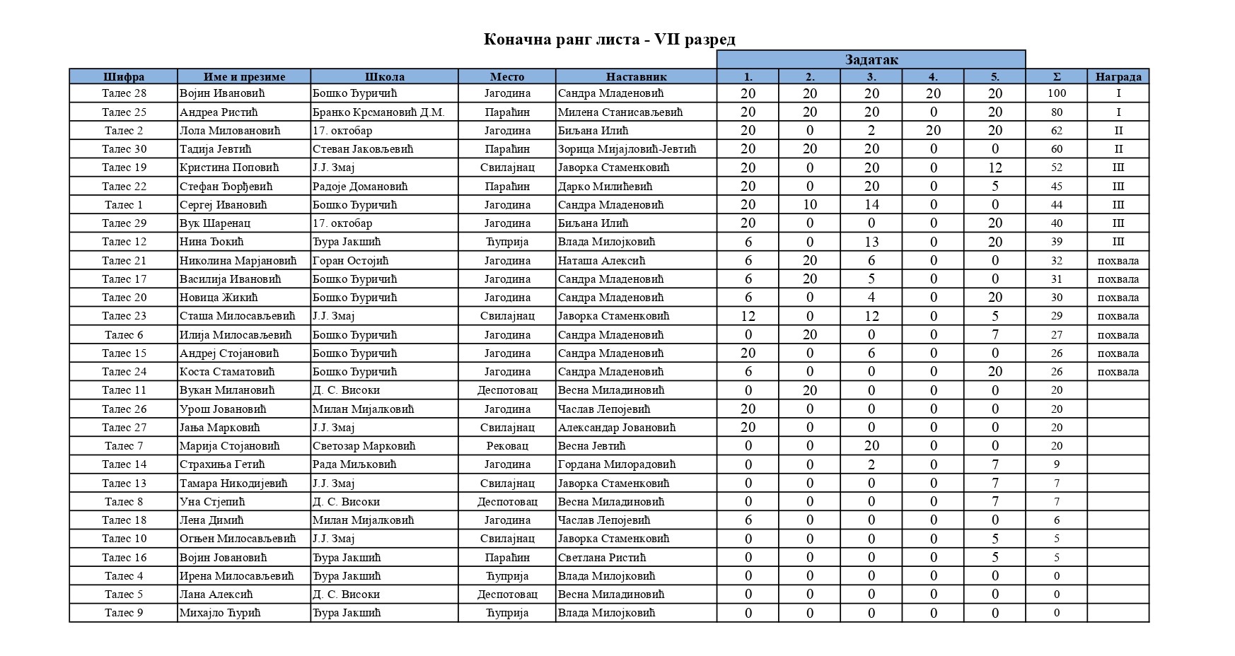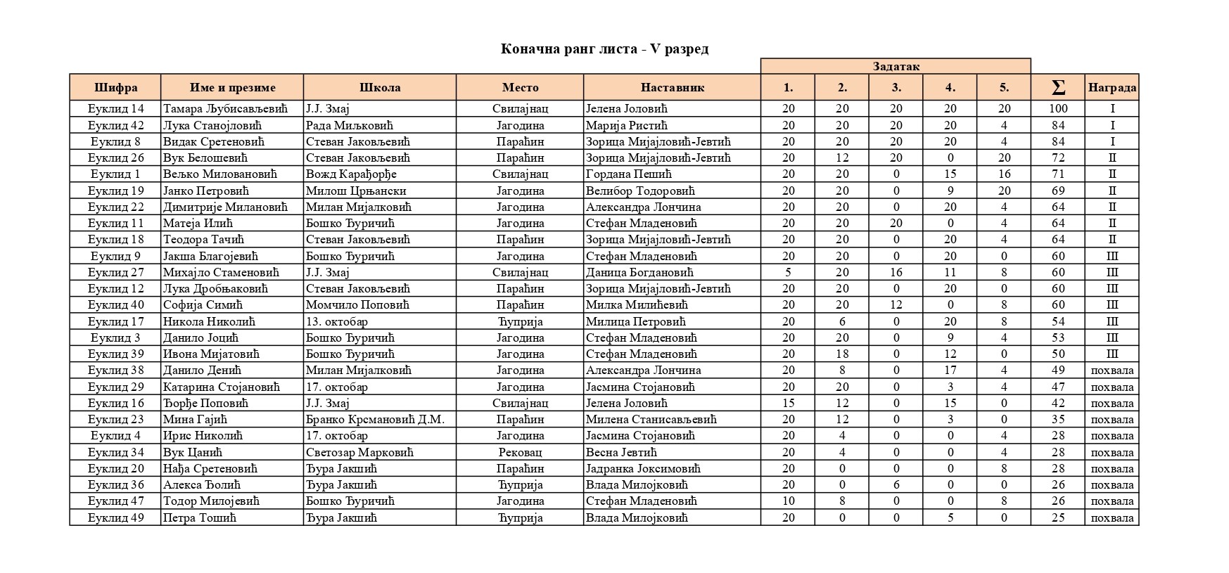 Резултати са Окружног такмичења из математике 2025/2026 od strane Александар Јовановић | мар 8, 2026 | а 2026, о 2026, т 2026, такмичење - окружно Резултати са Окружног такмичења из математике 2025/202608/03/2026 🔊 Читај ми У наставку можете погледати резултате са Окружног такмичења из математике.